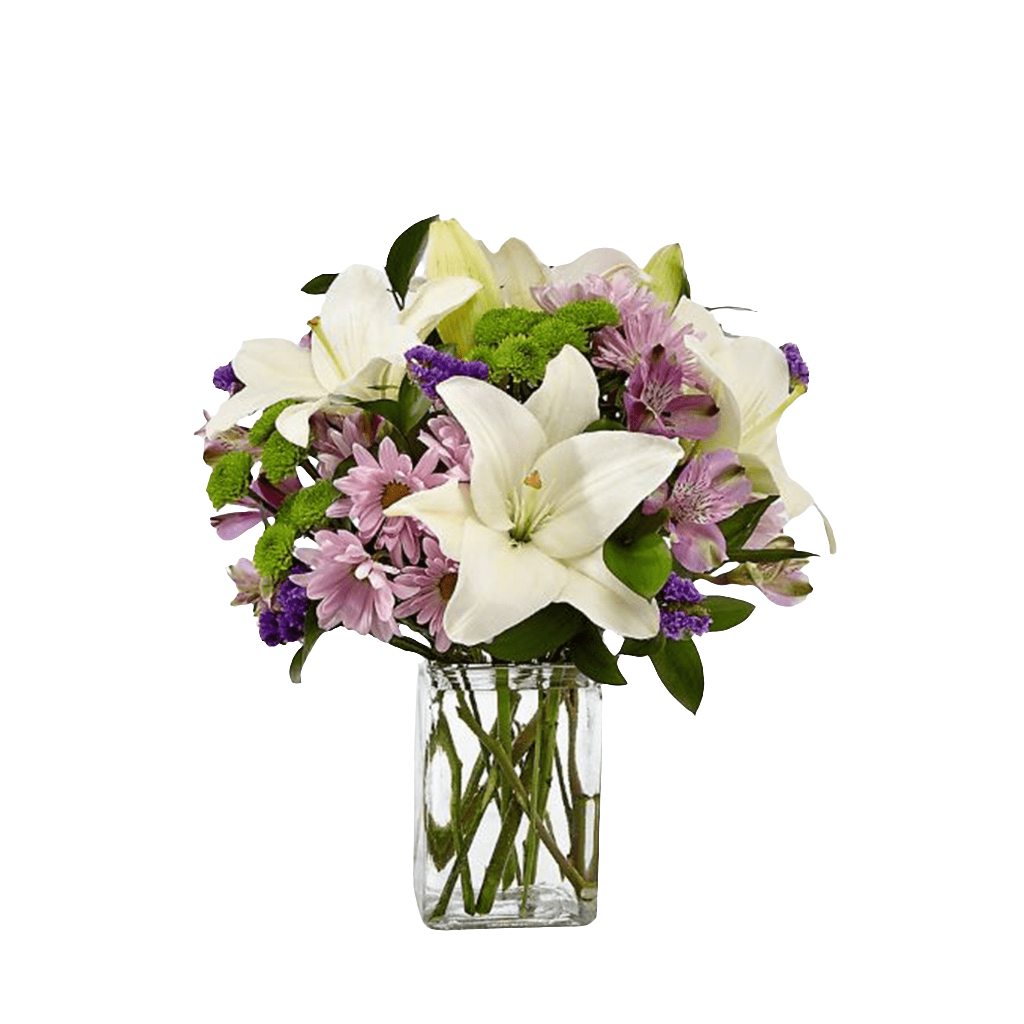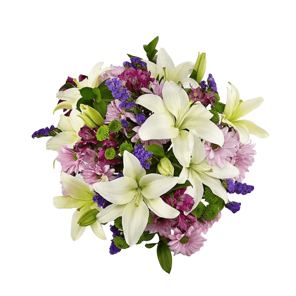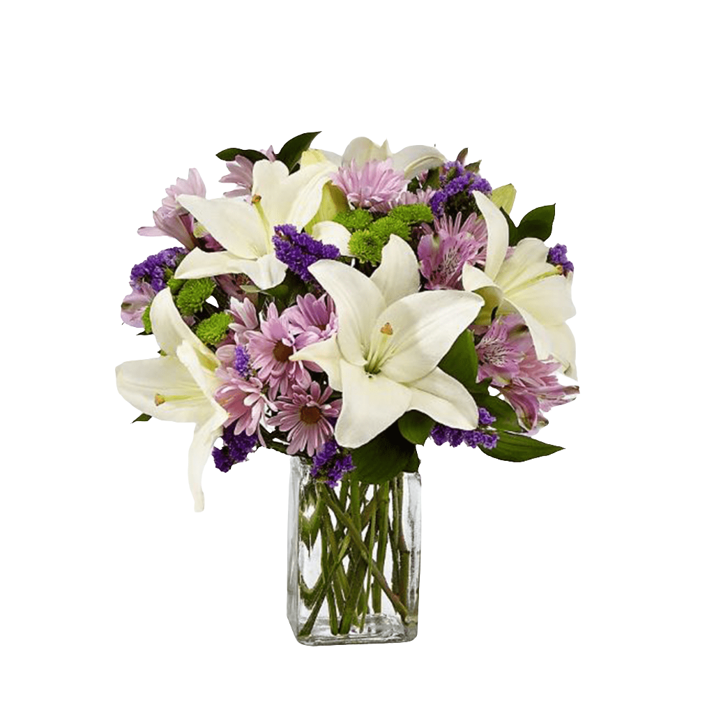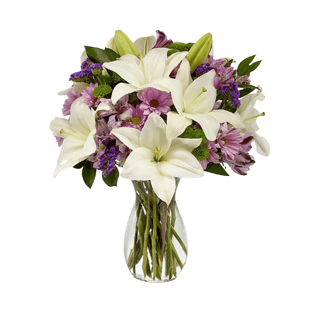 Recolectados a mano en granjas florales selectas y con una suave variedad de colores encantadores, que incluyen lavanda, morado y blanco, este hermoso arreglo floral ha sido tomado fresco para que celebres un cumpleaños, expresar tu gratitud u obtener buenos deseos al destinatario