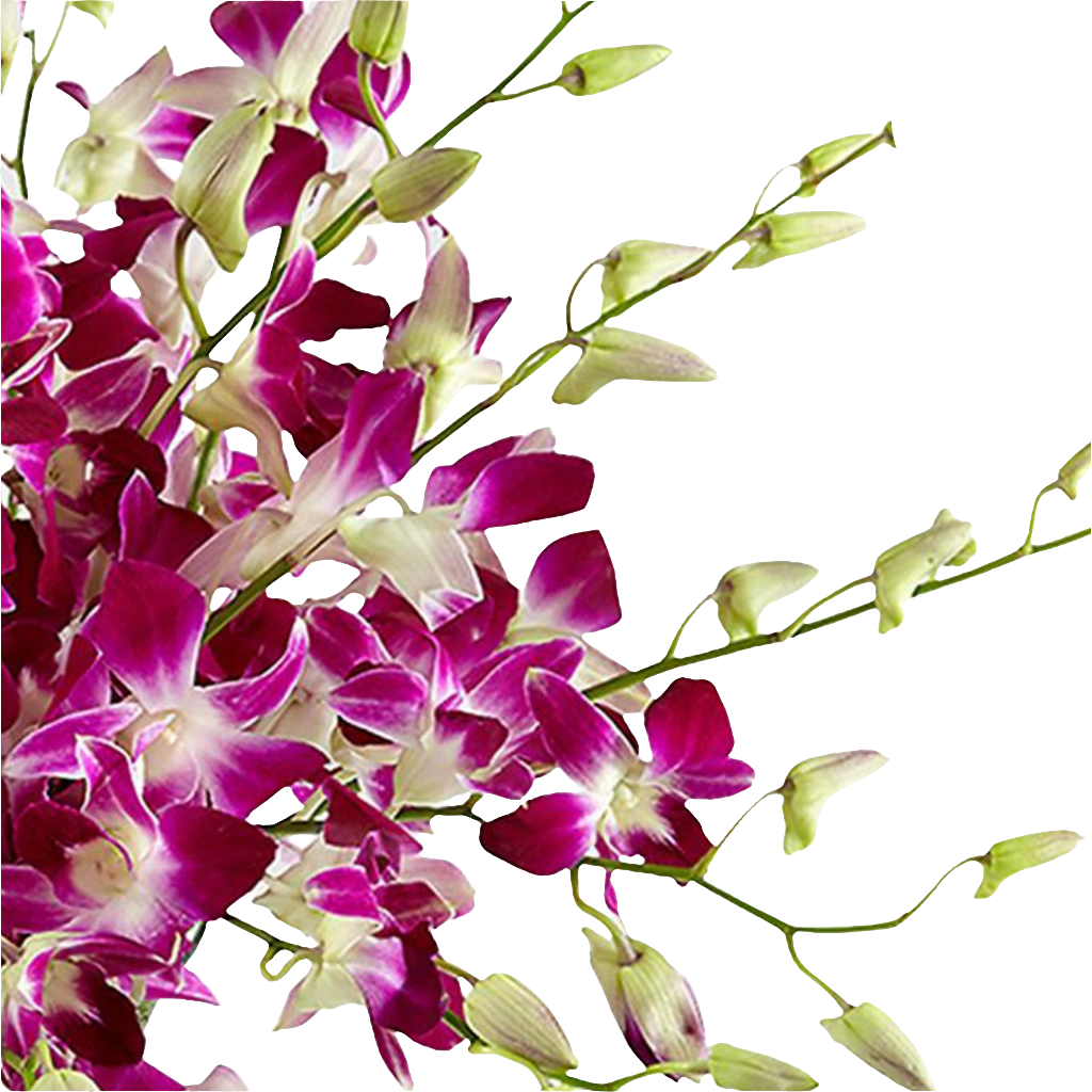Con flores como mariposas de color púrpura brillante, este llamativo ramo de orquídeas hará que la gente se detenga y diga "¡Wow! alguien realmente te ama."