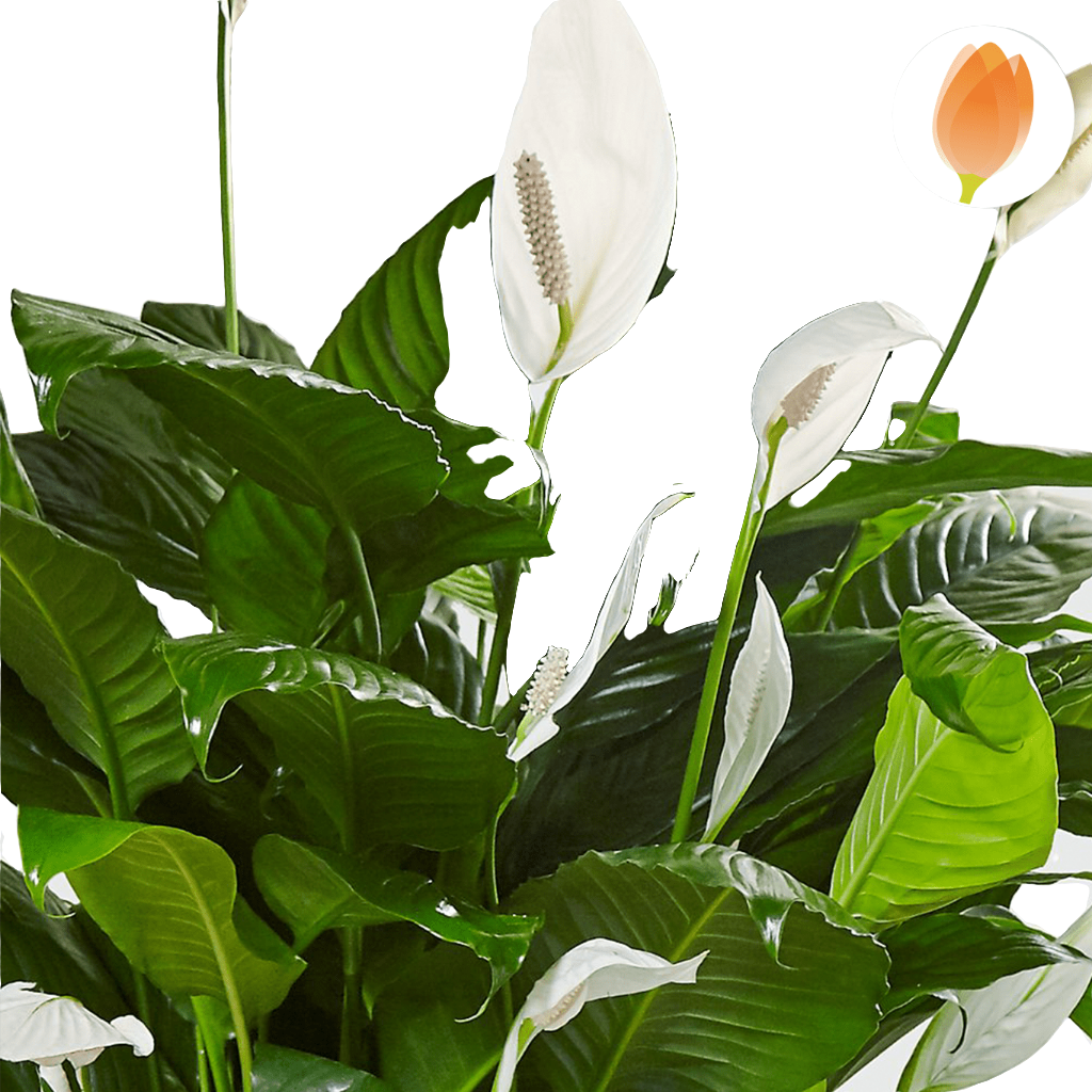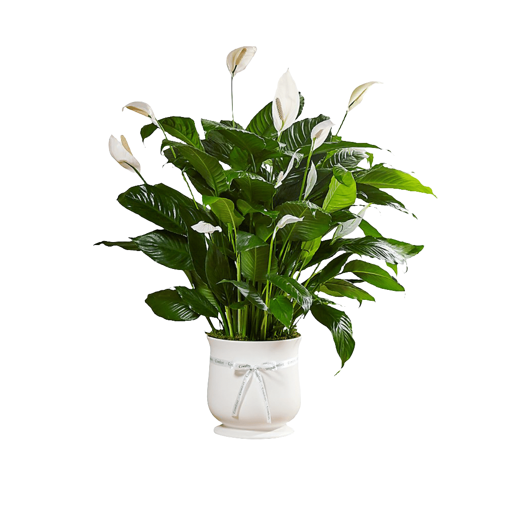 Nuestra elegante y sofisticada maceta de cerámica blanca tiene una elegante planta de lirio de la paz, que exhibe flores brillantes en forma de lágrima blanca entre el follaje verde oscuro para un efecto simplemente hermoso,