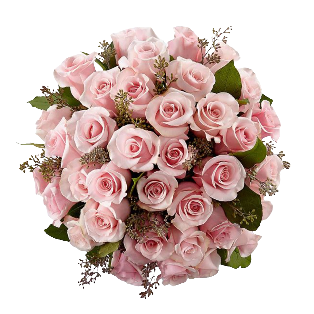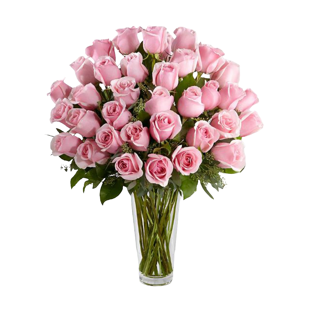 Las rosas rosadas son de apariencia suaves y son perfectas para un hermoso regalo para la dama de tu vida, esposa, madre, hija o novia, seguramente ella apreciará este ramo de rosas de color rosa pastel acentuadas con verdes y entregadas en un florero de vidrio transparente