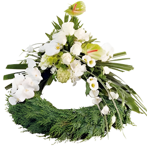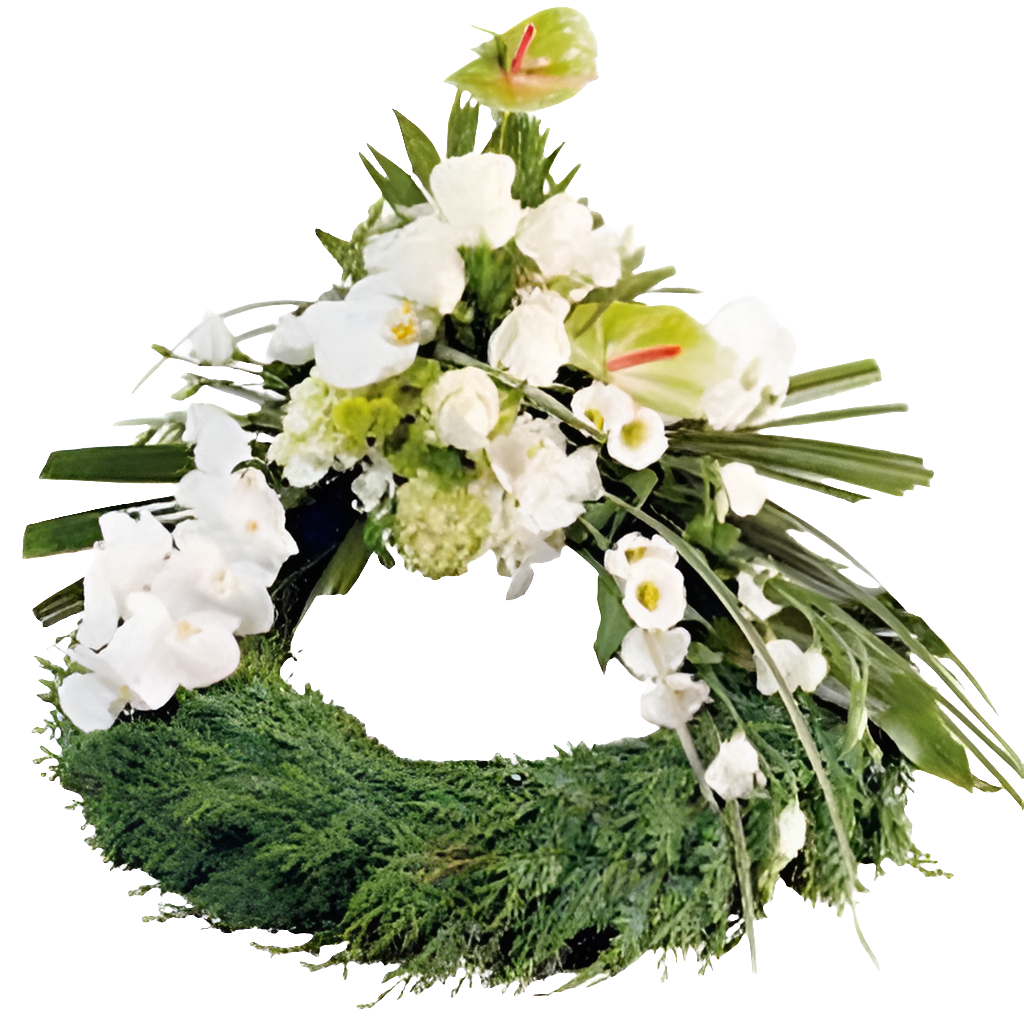 Es un arreglo funerario de lujo que combina la belleza de las flores verdes y las orquídeas en un diseño único y sofisticado. Esta corona funeraria se distingue por su elegancia y refinamiento, con detalles en relieve que realzan su aspecto distintivo. Las flores verdes, como lirios o crisantemos, representan la esperanza y la renovación, mientras que las orquídeas añaden un toque de exotismo y distinción. El diseño cuidadosamente elaborado de la corona crea una composición armoniosa y equilibrada, destacando la belleza natural de las flores. "Corona Fúnebre Elegancia Exquisita" es un tributo imponente y respetuoso, destinado a honrar la memoria de un ser querido de una manera excepcional. Este arreglo funerario de lujo transmite una sensación de clase y distinción, dejando una impresión duradera y resaltando la importancia del legado y la belleza de la vida que perdura en nuestros corazones.